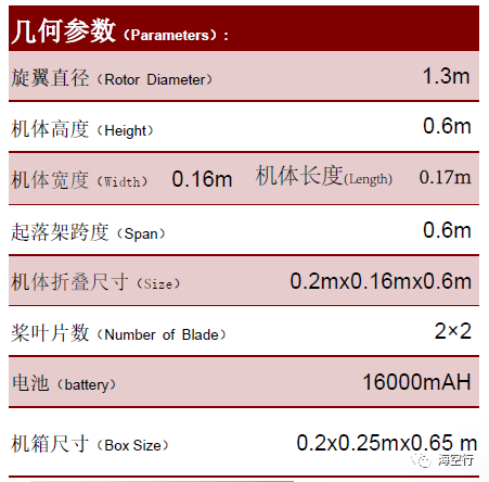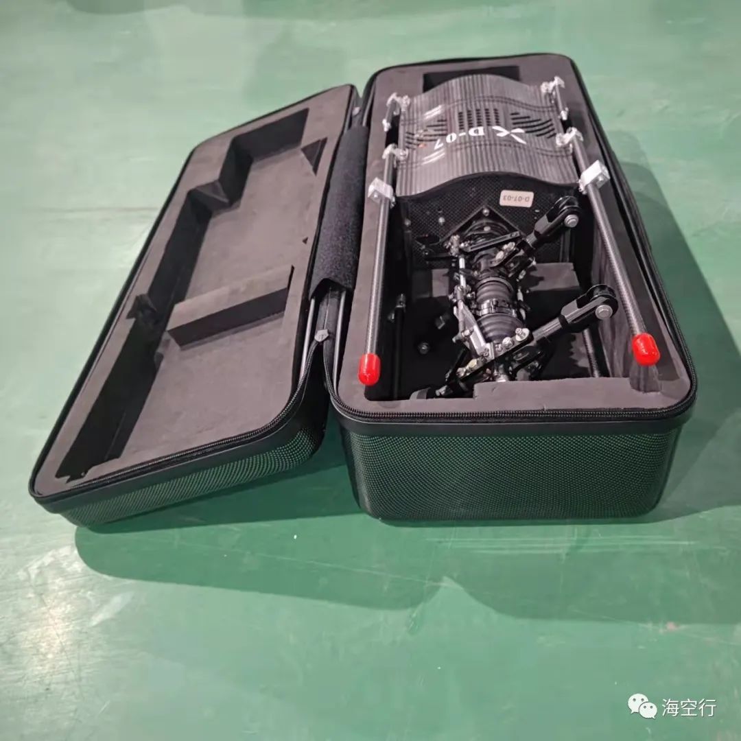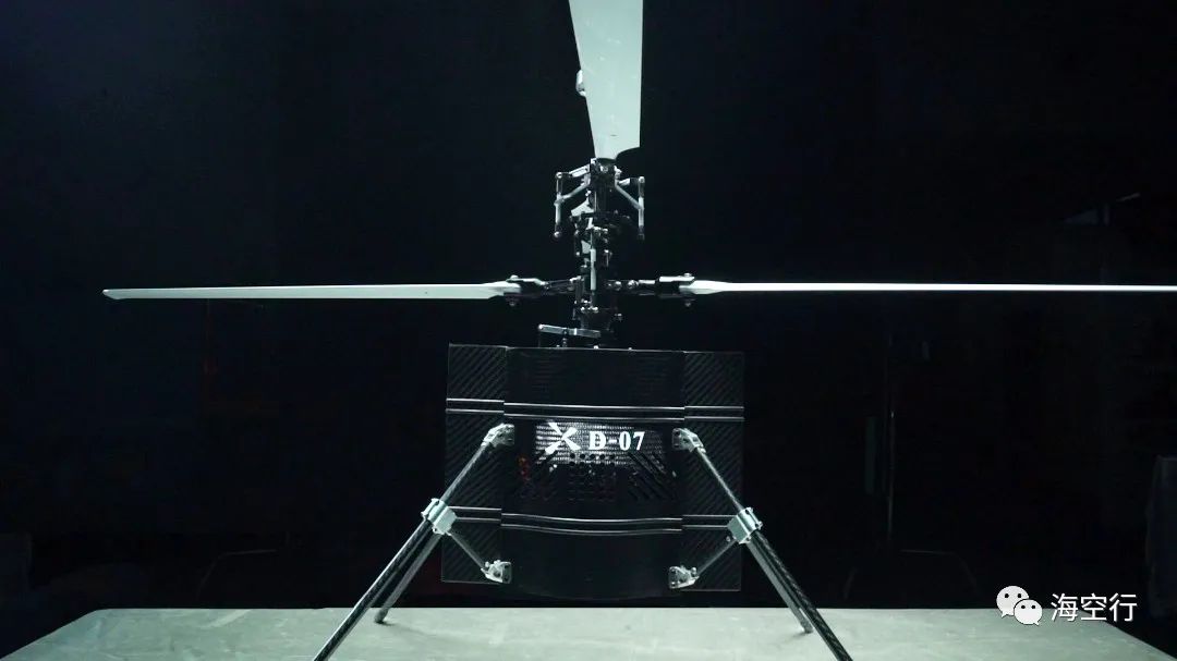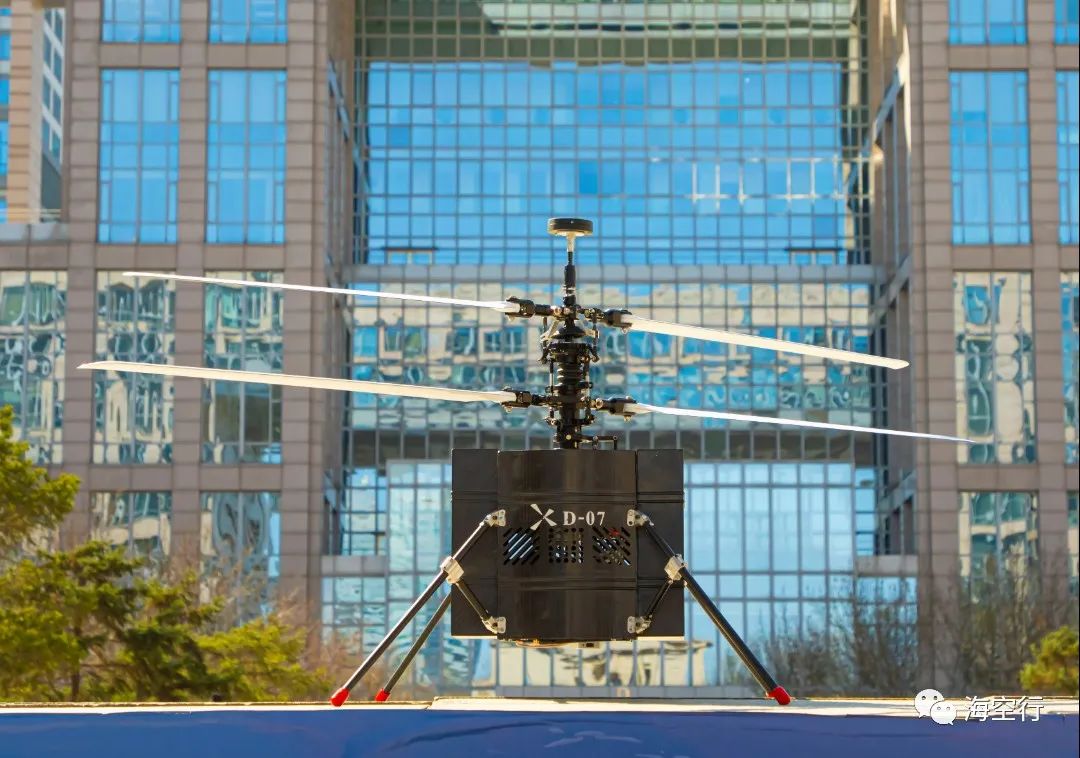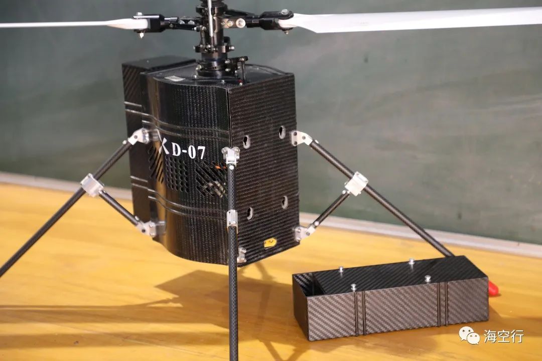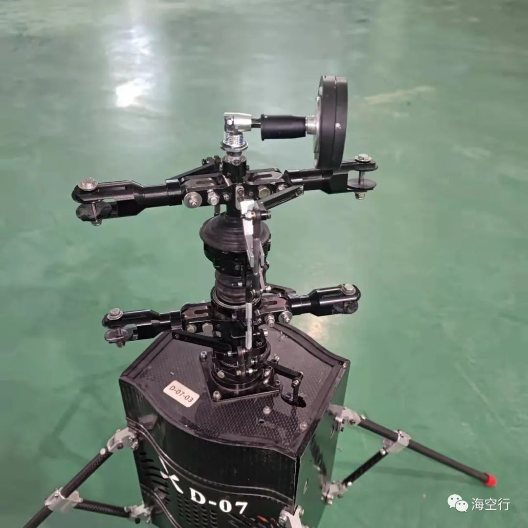 D-07 简介D-07是一款多用途便携长航时电动共轴无人机,是目前国内同量级中体积最小、质量最轻、航时最长的纯电无人直升机。其空机质量为3公斤;电池3公斤;最大起飞重量为12公斤。负载1公斤时,航时大于60分钟。时速为60-70公里。D-07外形美观紧凑,其顶部和底部均可安装任务设备,桨叶及起落架可快速折叠收放,电池箱通过卡扣连接在机身两侧,可快速拆装。该机折叠后可快速装入可随身携带的手提式包装箱。该机由北航直升机所陈铭教授指导研究生设计,由北京海空行科技有限公司完成测试飞行,包括2项发明专利。该机于2019年设计,2020年完成自主导航飞行。