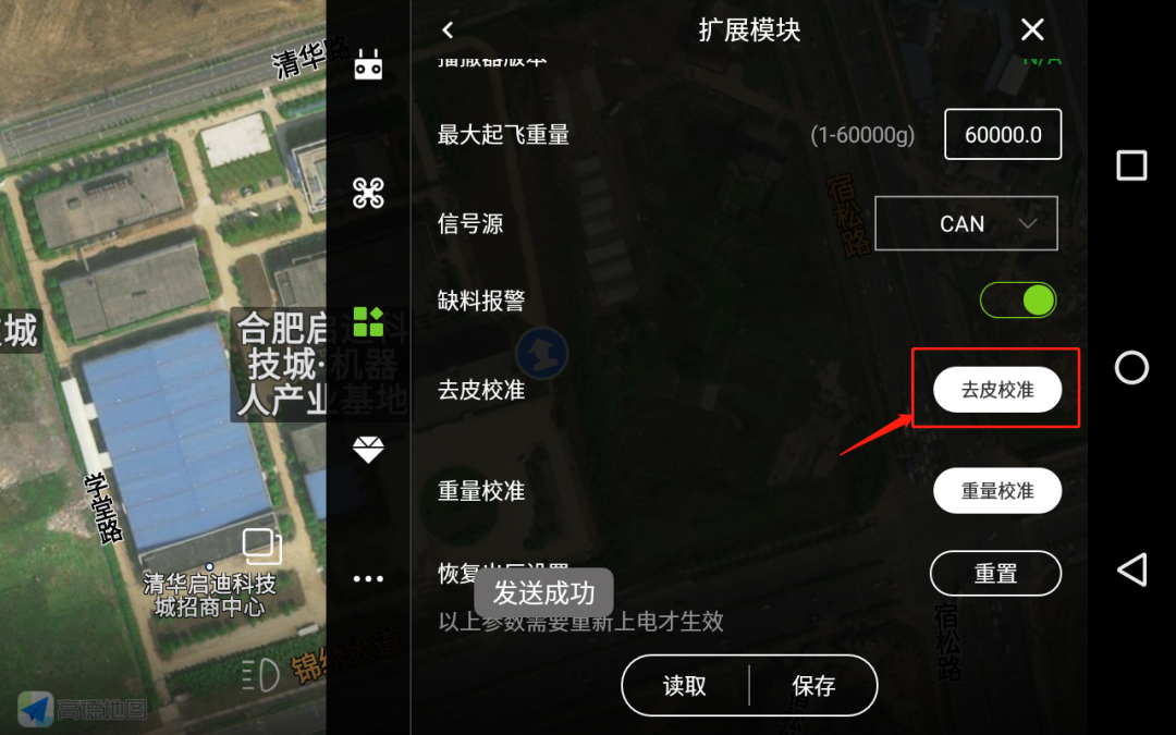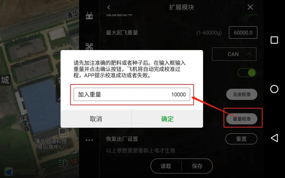 在CAN模式下可在APP中设置最大起飞重量,超过输入值后飞机无法解锁起飞,以避免装料过载造成动力饱和导致的摔机风险。