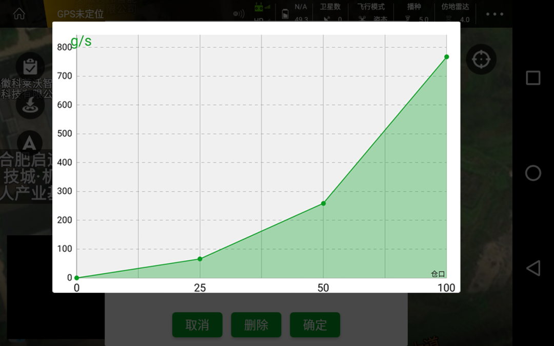 精准播种模式下阀门可以和飞行速度联动,作业人员只需要设置亩用量,轮盘转速和固定飞行速度即可。同时可以根据不同的颗粒新建不同的模板,并进行流量校准,如作业时遇到已有模板的颗粒,可直接调用模板,无需重复设置。
