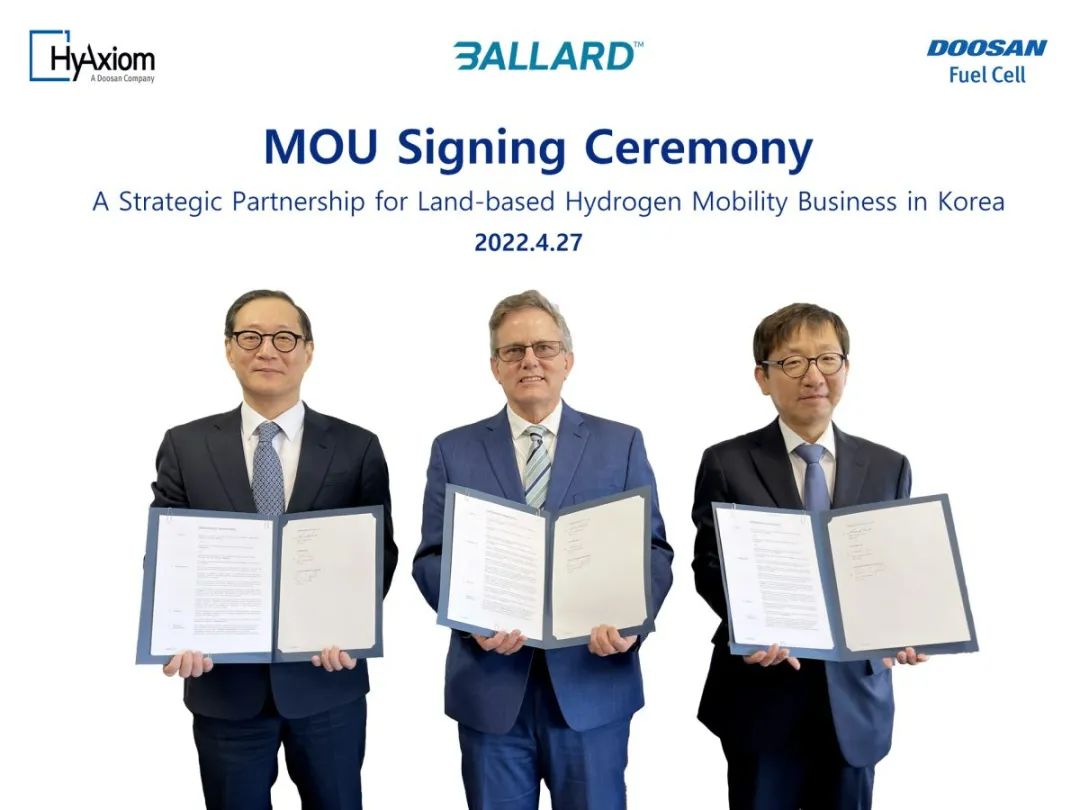 斗山燃料电池公司28日表示,与巴拉德动力系统(以下简称巴拉德)和HyAxiom签署了一项谅解备忘录,在美国康涅狄格州HyAxiom总部开发用于道路用氢燃料电池系统并供应韩国的氢动力巴士使用。