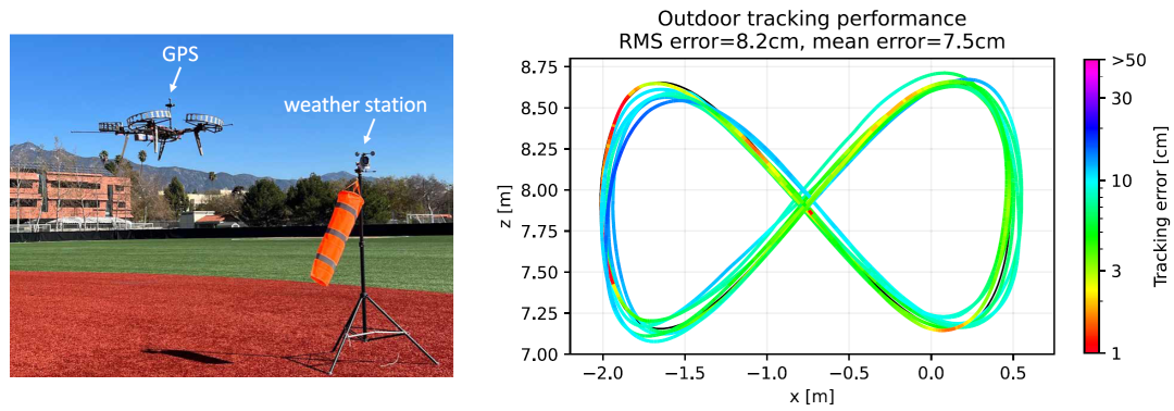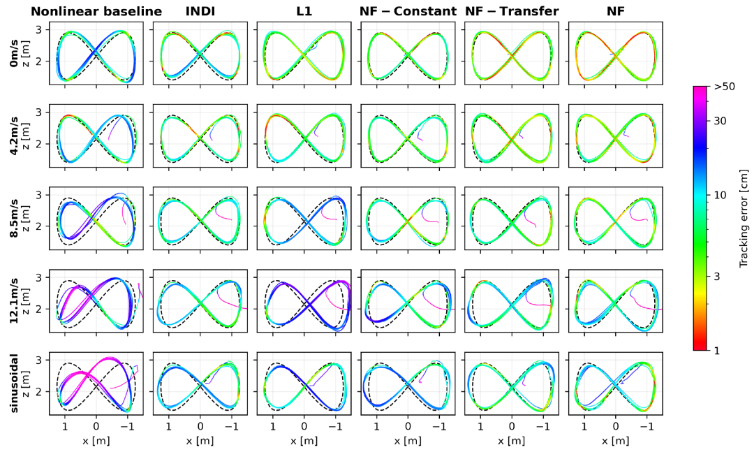当在加州理工学院真实天气风洞产生的具有挑战性的风况下进行评估时,风速高达43.6公里/小时(12.1米/秒),与最先进的非线性和自适应控制器相比,神经飞行实现了精确的飞行控制,跟踪误差大大减小。除了强大的经验性能外,神经飞行的指数稳定性还保证了鲁棒性。最后,我们的控制设计外推到了看不见的风况,结果表明,对于只有机载传感器的室外飞行是有效的,并且可以在性能退化最小的情况下跨无人机传输。