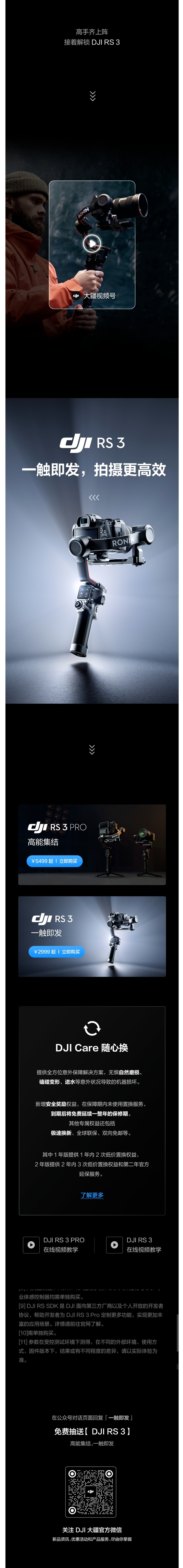 大疆发布 DJI RS 3 Pro 及 DJI RS 3 稳定器,高能集结
