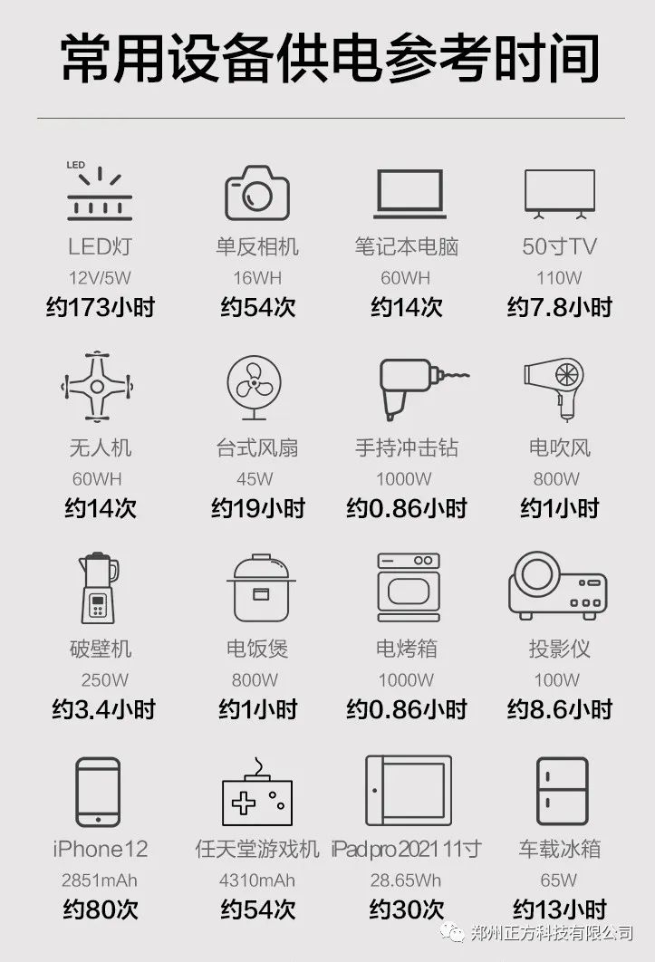 为了方便大家看明白,我直接拿某东一款1021wh(1度电多一点)的户外电源供电时间表供大家参考!