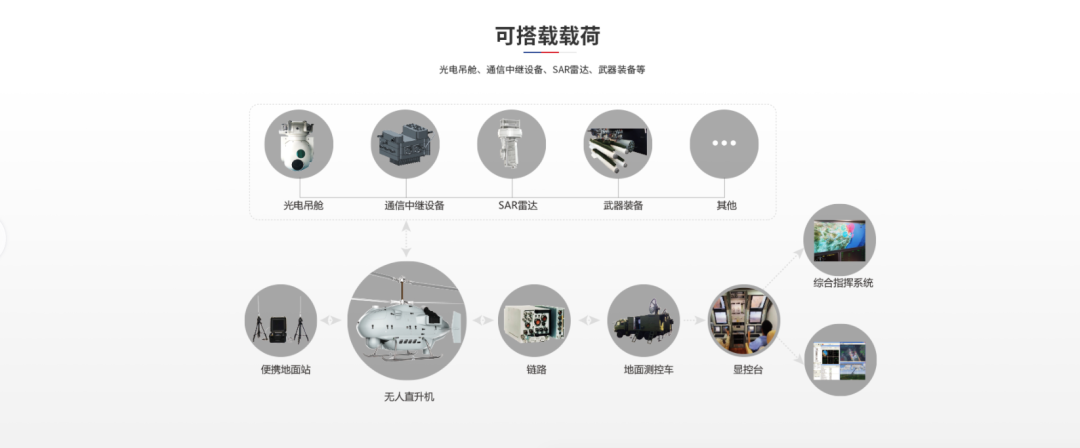 TD220以上优势,使得其可搭配多种载荷,光电吊舱、通信中继设备、SAR雷达、武器装备等。进而能完成多种任务、满足多种需求。