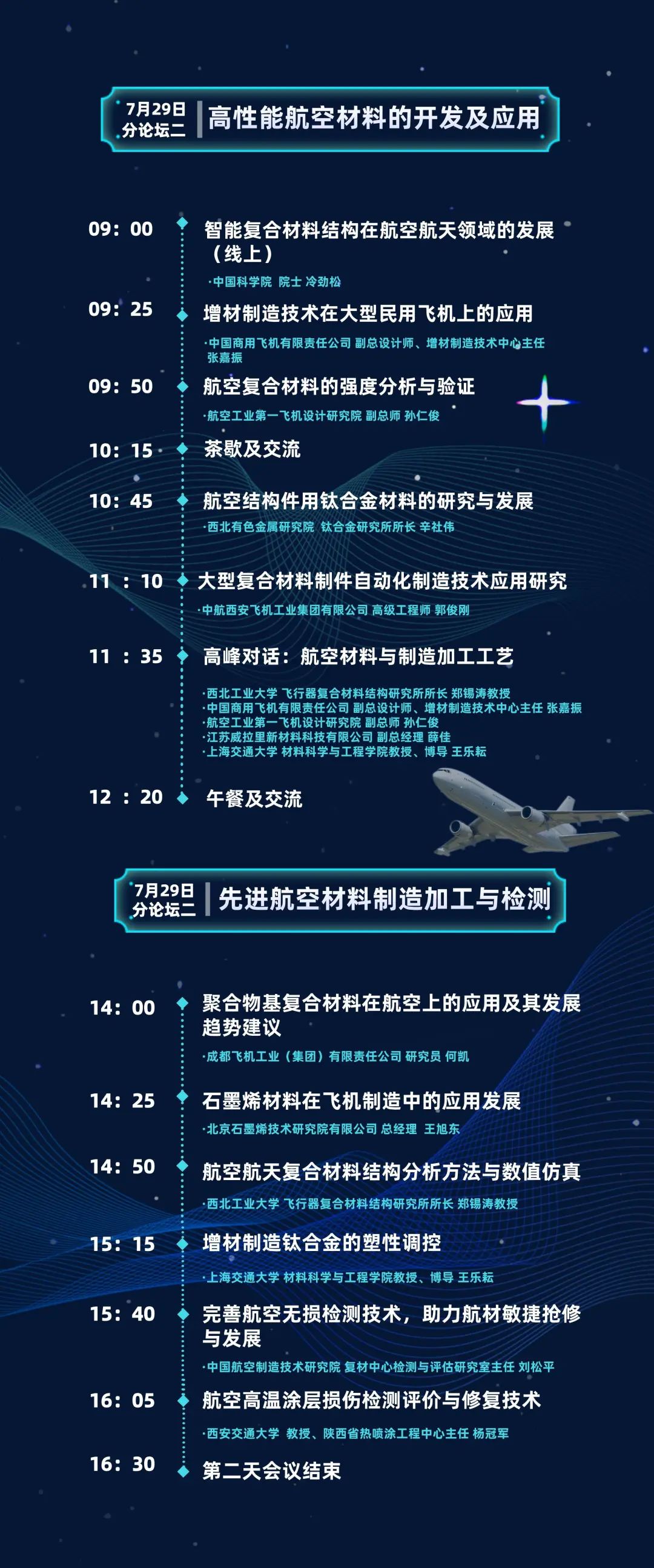 | 航 材 分论坛二 | Day2 上午 Day2 下午 | 高性能航空材料的开发及应用 先进航空材料制造加工与检测 |