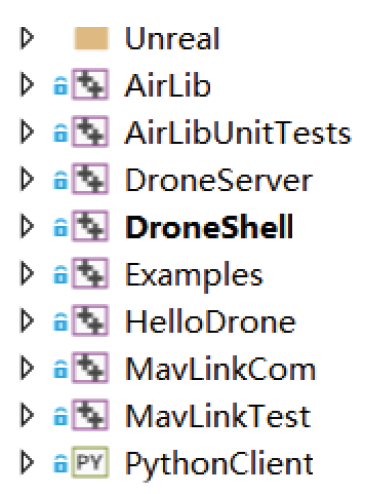 AirSim模块库由 AirLib、AirLibUnitTests、DroneServe、DroneShell、Examples 等组成。模块解释如下: