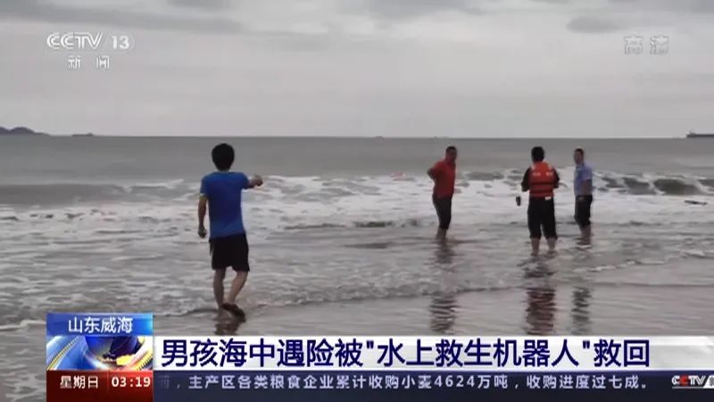 CCTV《新闻直播间》《经济信息联播》《第一时间》等栏目报道男孩海中遇险被“水上救生机器人”救回