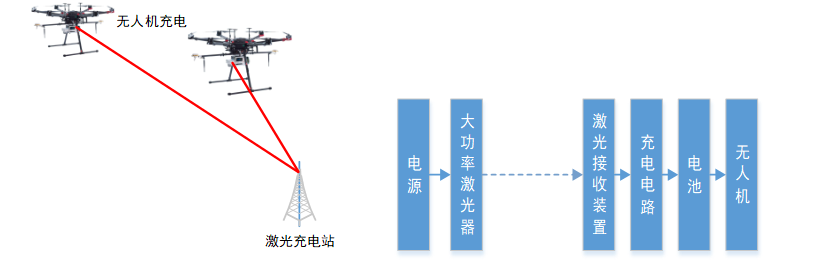 图3无人机空中激光充电原理/图4 无人机空中激光充电图示