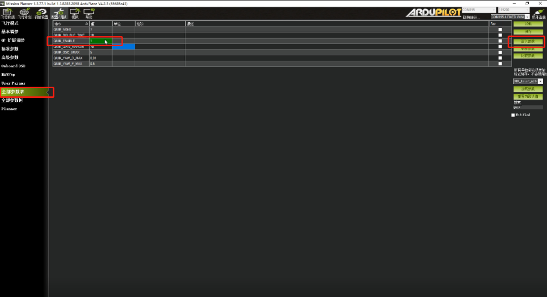 将Lua脚本(后台回复“脚本”即可获取)安装在飞控MicroSD卡的APM/SCRIPTS目录中,将SCR_ENABLE设置为1,重新启动并刷新参数,然后将QUIK_ENABLE设置为1。