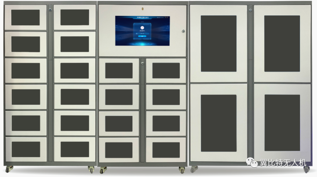 无人机智能充电柜可对多种不同类型的大疆无人机电池进行集中、快速、安全的充电、放电及存储。