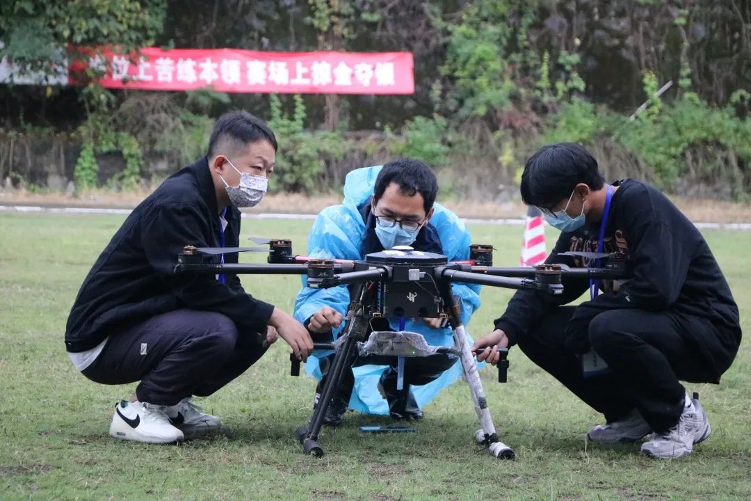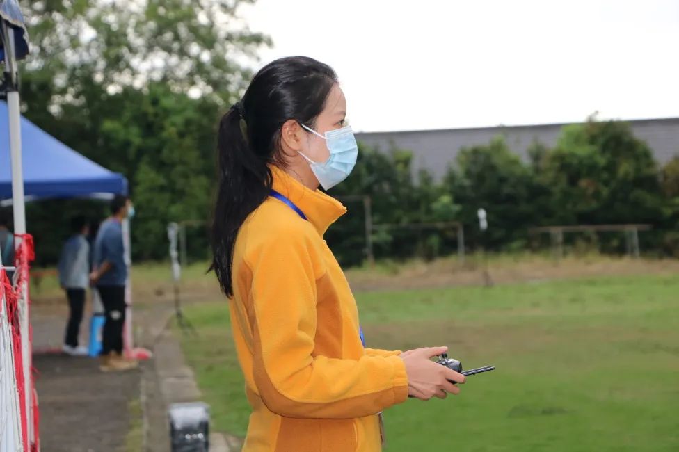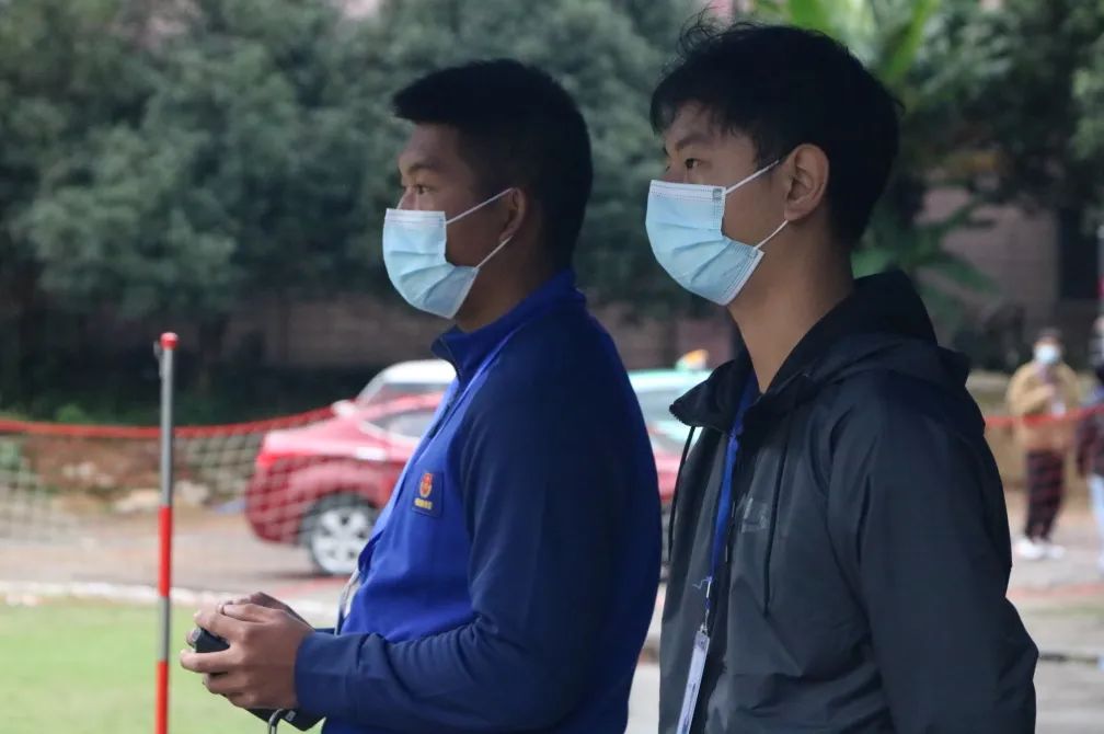 考试前,现场工作人员认真检查设备,确保设备可以正常飞行,待考生在后考区整齐地排列候考,考生们手持无线电遥控设备,目光坚定,镇定操作。