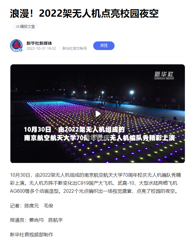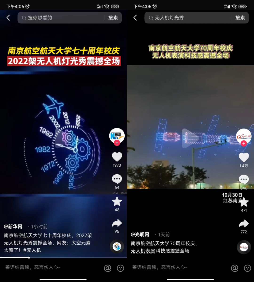 热点报道丨2022架无人机点亮夜空,庆祝南航建校70周年