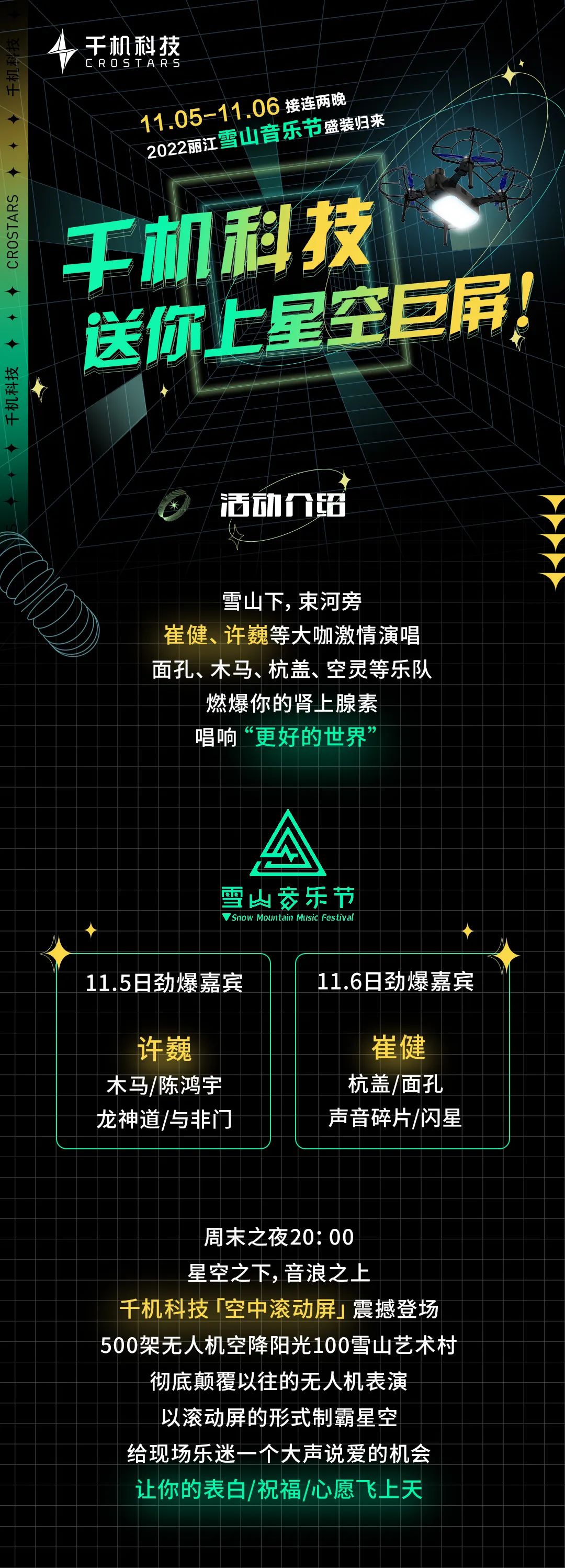 2022雪山音乐节星空霸屏LIVE SHOW,无人机「空中滚动屏」宠你上天!