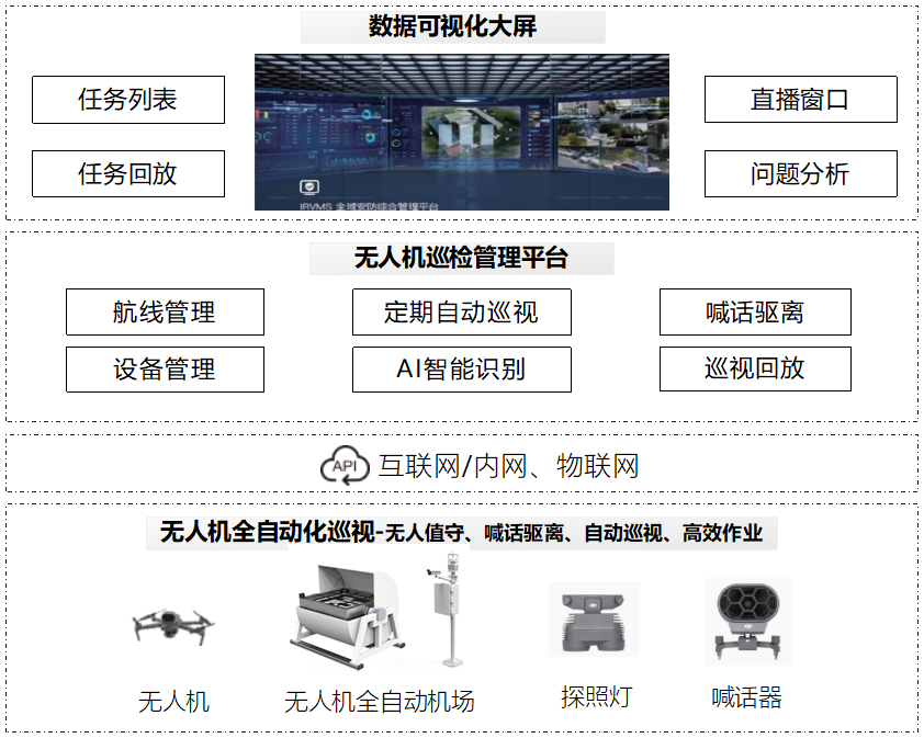 水电站巡视工作是保障水利枢纽安全运行的重要措施。水电站具有地势起伏大、环境复杂、覆盖面积广阔等特点,传统的人工巡视受气象、环境影响大,且存在较多盲区,不仅巡检精度和效率低、巡检风险和成本高、巡检周期冗长。在水电站周界水域常有外来人员聚集时,难以即时驱离。