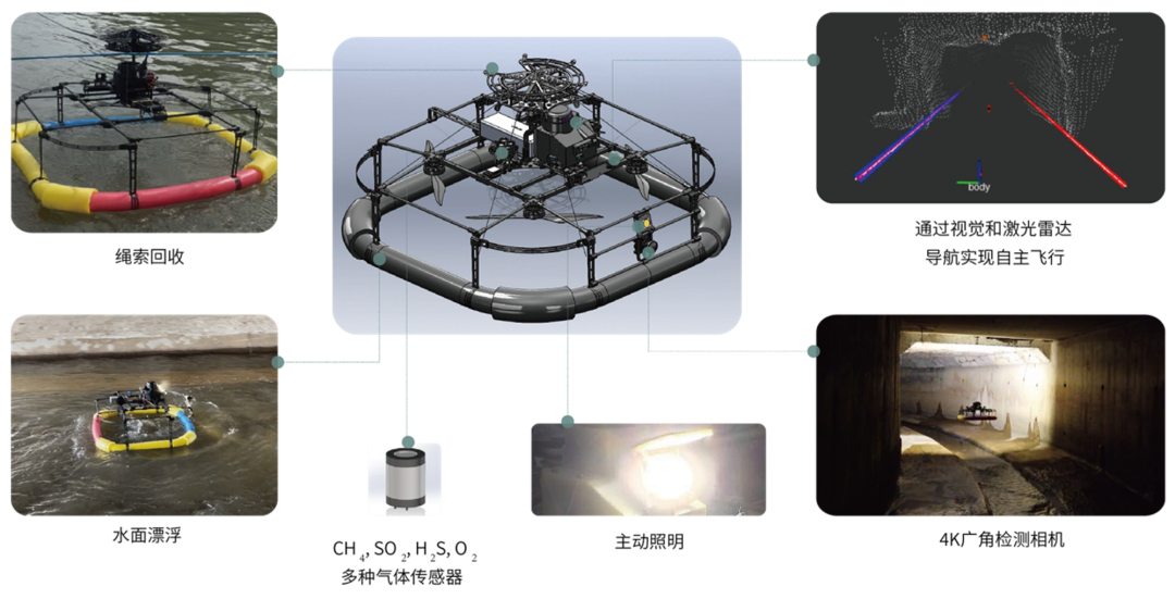 TA-Q3最大的优势在于强大的自主作业能力,通过SLAM视觉定位技术、激光雷达三维探测技术、实时在线建模技术及在线航路规划技术,可以在飞行过程中实时建模,自主飞行、自主避障,无需飞手操控,也无需信号支持。搭载4K广角检测相机、智能AI图像识别技术、多种气体传感器,让巡检作业更智能化,效率更高,节省成本。通过无人机防护技术,搭配发射装置,能够安全漂浮于水面上,进入四五十米深的管道里作业,把人从危险、脏乱的工作环境中解放出来,解除危险气体、环境对工人带来的安全隐患。搭配联合飞机研发的无人机平台,匹配巡查检测结果分析软件,进行位置标定、框选缺陷标签、数据筛选,自动生成检测报告,给客户提供系统的解决方案。瞄准细分场景应用,联合飞机TA-Q3无人机以产品设计新思路、新形态,用更加智能化、自动化,进行高安全性、高精度的管道检测作业,打破常规人工和机器人作业模式,成为城市健康、高质量发展的最佳助手。