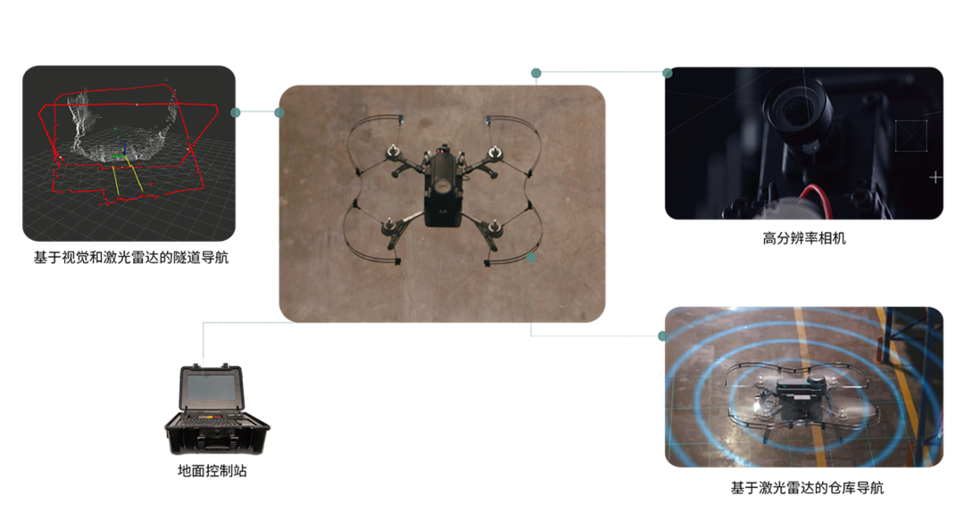 TA-Q4仓库巡检无人机基于视觉SLAM技术、激光雷达技术,4208X3120 高分辨率摄像设备与控制中心连接,具有实时三维导航与仓位标记、智能货物托盘数据扫描等功能,实现仓库内自主飞行、避障,自动扫码,清点数量,分类统计与信息上传;配置桨叶防护罩,使其能够在复杂的仓库巡检环境中安全飞行。飞行过程中快速识别、计算、建模,可根据客户定制化需求,应用于多种规格、类型的仓库。同样巡检条件下,无人机的巡检时间仅为传统人工作业时间的6.5%,大幅减少人工成本,提高巡检效率。当传统仓储受到全球电子商务、高速供应链、巨大成本压力等影响时,小巧灵活的 TA-Q4 在高达数十米的货架中间来回穿梭,让仓库管理从人工方式向数字化、智能化迈进,不在停留于概念层面。未来,联合飞机还将继续用国际领先的技术与产品,赋能大型物流仓库、机房、厂房等室内区域的自主巡检作业,盘点货物及设备情况等更多细分场景的应用中,带领仓储行业进入数字化新时代。