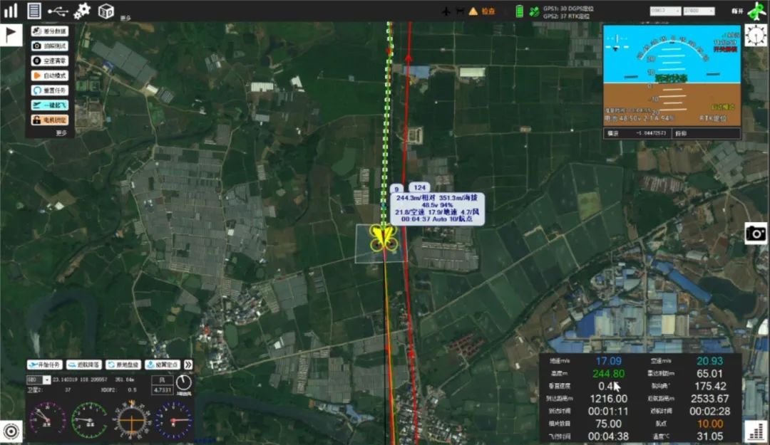 总结:此次无人机巡检演示,飞行距离42km、飞行时间37min、飞行高度240m、回传相片1000张、识别隐患目标12个。