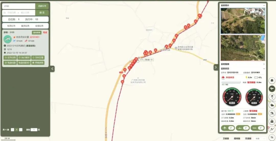 S410起飞后盘升至目标高度,按照设定航线行驶。飞行过程中,无人机搭载的SA4535相机通过4G网络回传图片,技术员可通过后台查看无人机飞行状态。