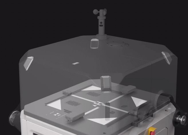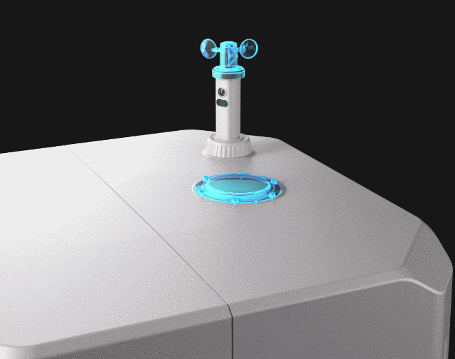 其次,一体化设计的机场如何安置气象监测设备?工程师们将风速计安装在舱盖最高处,专门为雨量计设计减震功能,保证监测的准确性。无人值守状态下,当户外狂风暴雨来袭,超出无人机设计工况时,气象站将获取外部环境数据,大疆机场自主判断起飞环境,适时阻飞,避免事故发生。