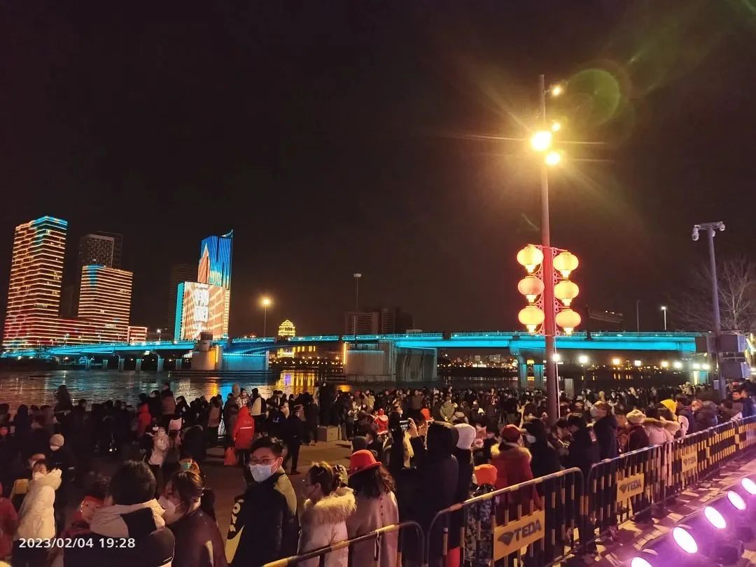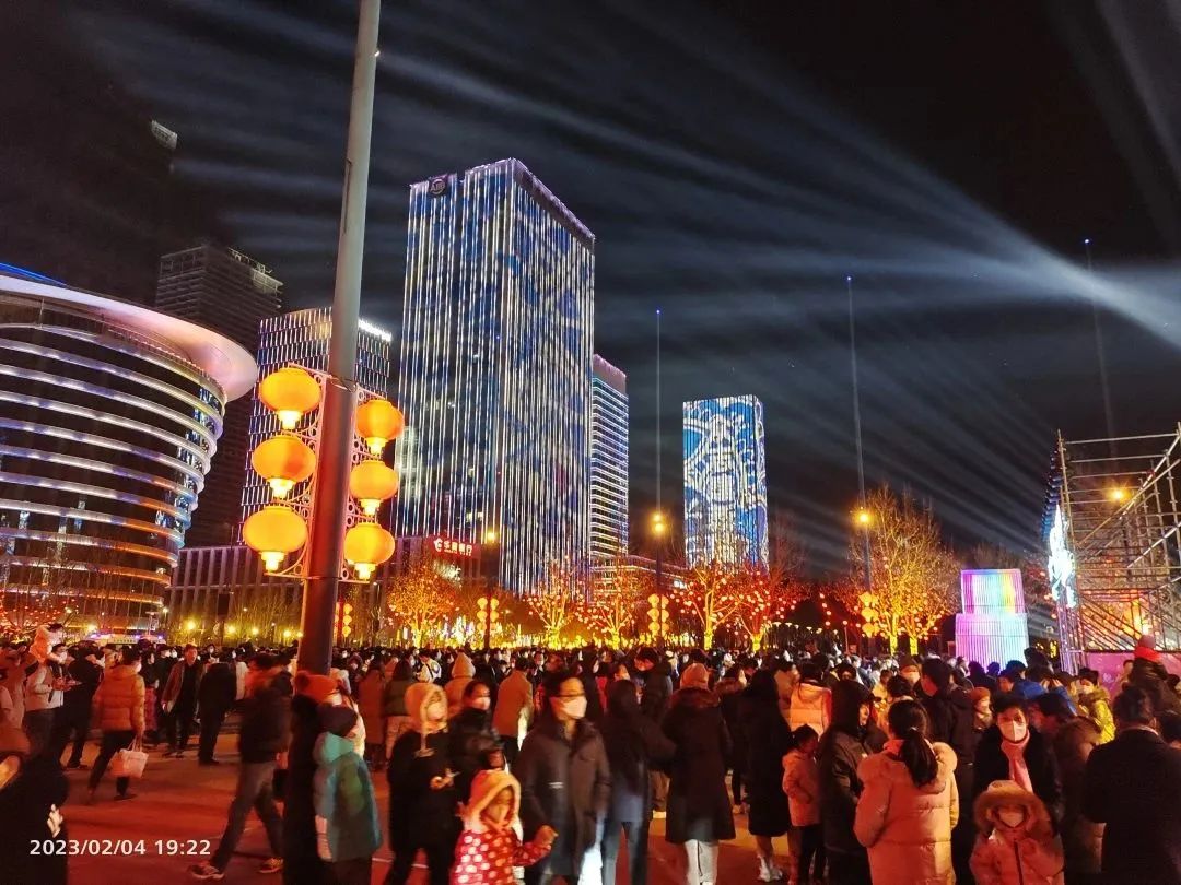 当日的于家堡盛装亮相,作为滨海新区城市地标,美轮美奂的无人机表演与酷炫的楼体灯光秀为滨海新区人民带来了一场饕餮光影盛宴。现场人潮涌动,感受新年及元宵节的节日氛围。