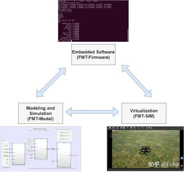 区别于其它的开源飞控,FMT构建了从嵌入式软件,建模与仿真于一体的软件开发平台。