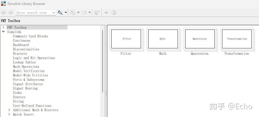 除了Simulink提供的基础模块以外,FMT-Model还提供一套FMT Toolbox,包含大量基础数学模块,来帮助快速搭建算法模型: