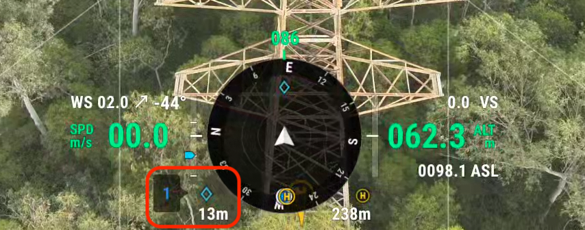其次,我们需要调整环绕的半径。建议使用向前飞行的方式调整半径,并确保环绕路径内无障碍物,以确保飞行安全。可通过导航信息模块左下方数字了解当前环绕半径。