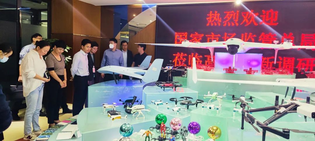国家市场监管总局领导一行对此给予了充分肯定并表示,高巨创新深耕无人机领域多年,拥有研发、生产制造一体化全产业链生态圈,研发和生产实力雄厚,是行业的龙头企业。科学、严谨的标准是行业健康持续发展的基石和保障。希望高巨创新能充分发挥行业标杆示范效能,带头组织同行业及上下游产业研讨,参与编制无人机编队表演标准制定,规范行业服务质量标准,推动行业持续、健康、有序发展。