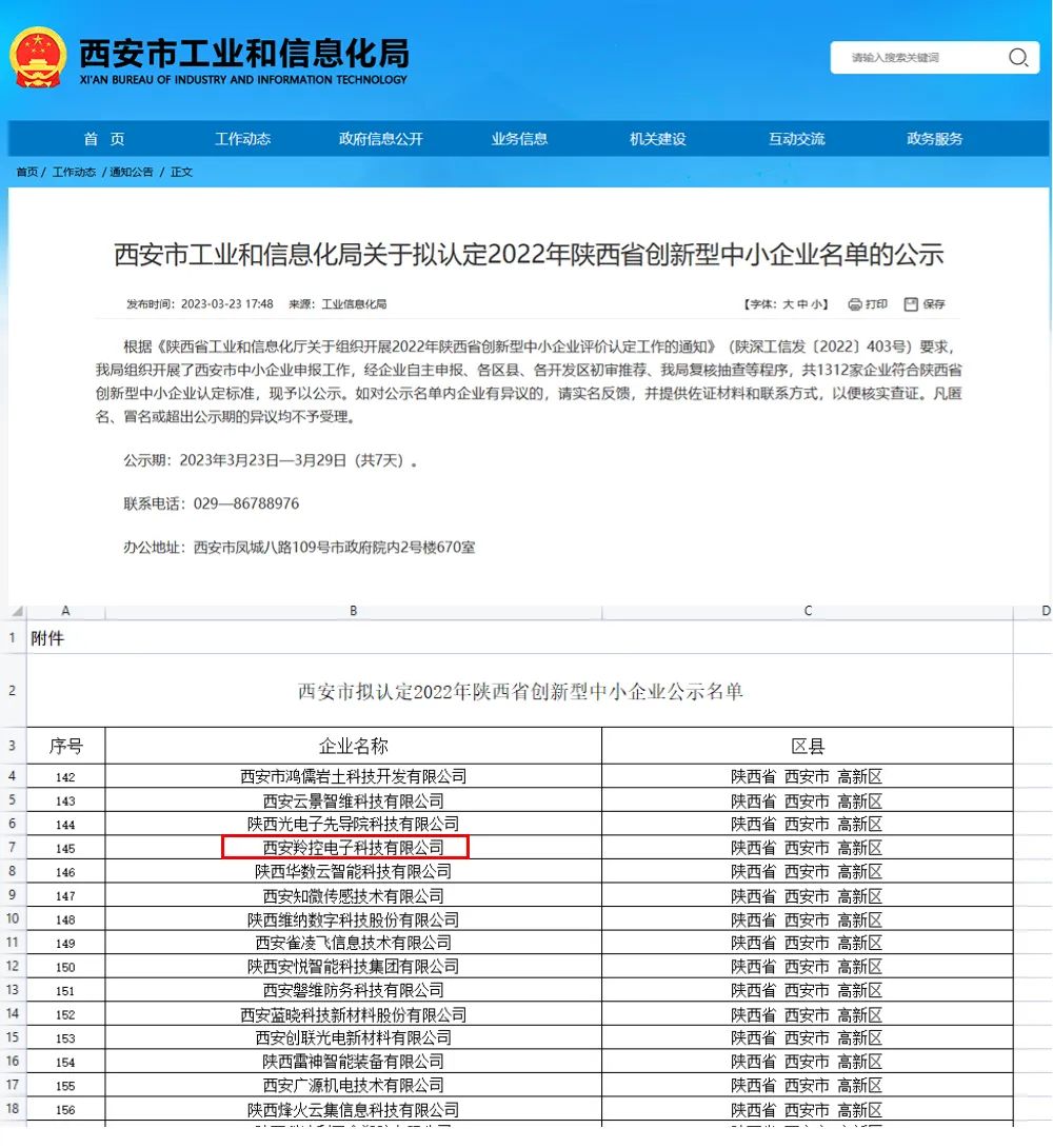 2023年3月23日,西安市工业和信息化局公布了“2022年陕西省创新型中小企业”名单。西安羚控电子科技有限公司成功入选。