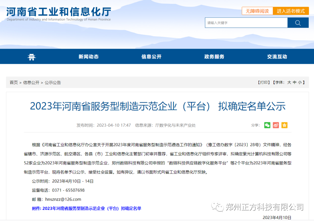 捷报!正方科技入选2023年河南省服务型制造示范企业(平台) 拟确定名单
