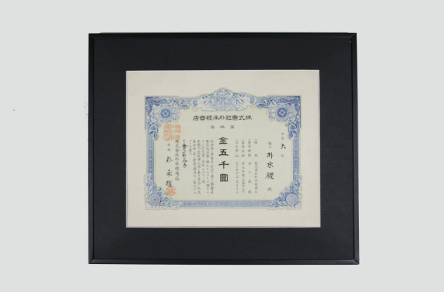 20世纪20年代,在经济不景气的情况下,朴承直商店在增加资本金的同时,进行了股份公司的改编,每股价格为50韩元,发行了1200股。历史馆展示了当时发行的支流形式的股票证券、公司牌匾和职员名册、存折、纳税发票等100多年前近代企业萌芽期的史料。朴承稷商店最初是建立职员上班簿、根据客观资料支付奖金等,在当时是运营革新制度的近代企业。
