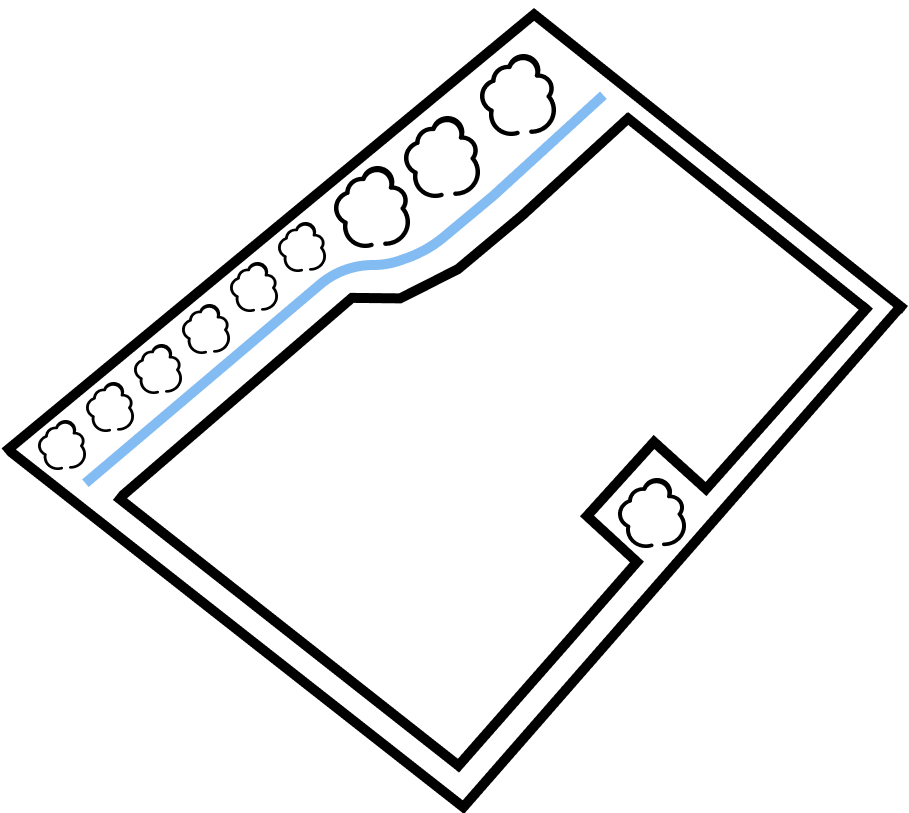 类型二:如果地块边界有连续成排的高大树木,测绘时蓝色区域是留出的安全距离。