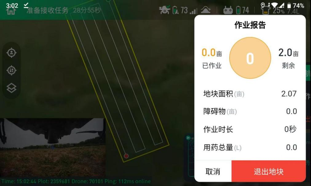 新增作业报告功能:作业完成后,将生成作业报告,展示当前地块的总面积,作业面积,剩余面积,作业时长等信息,方便飞手或用户查阅,简单清晰。