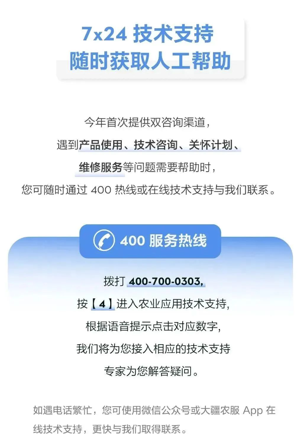 贴心售后,农忙季 7x24 小时服务开始啦!