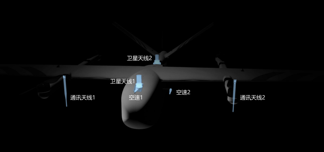 四余度IMU、三余度航向传感器(双磁罗盘+双天线定向)、双余度卫星接收机、双余度空速计及三余度气压计获得高精度的位姿数据,并通过可人工干预的自动余度管理技术,提高了整个无人机的运动信息反馈的可靠性。