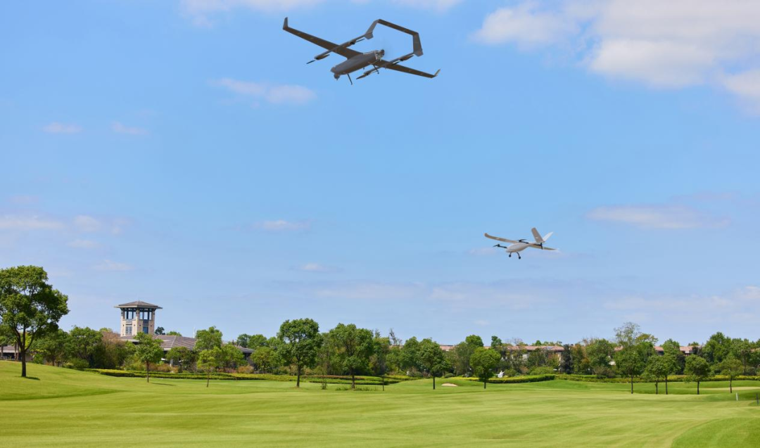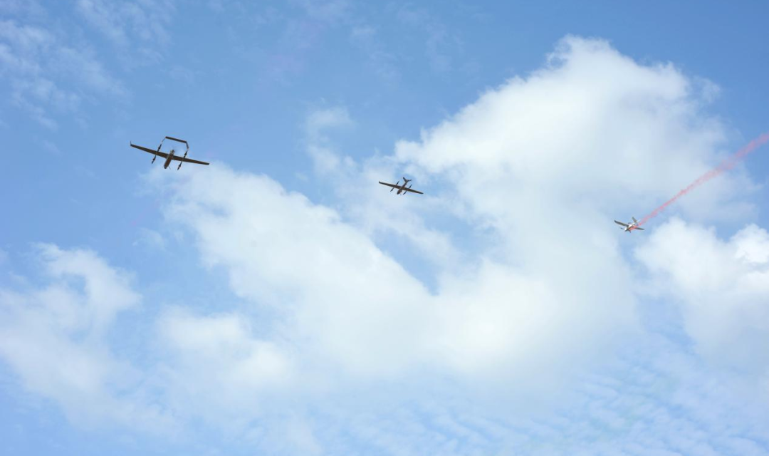 首先飞行V500,V500垂直起飞离地3m左右启动发动机,待V500升至离地40m高度,准备以多旋翼模式转换为固定翼模式进入巡航任务时,V330PLUS点击解锁自动飞行。待V330PLUS飞行至设定高度后,可以展示油电混合V500与电动V330PLUS同时飞行的场景。