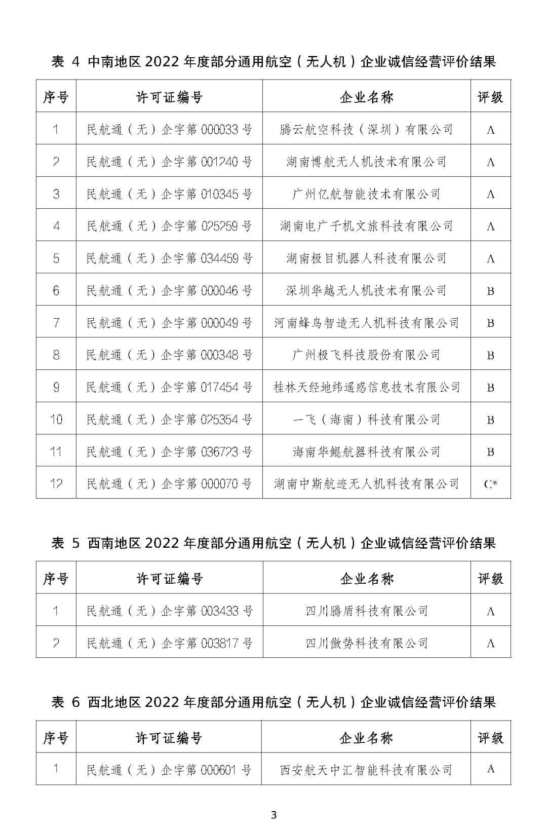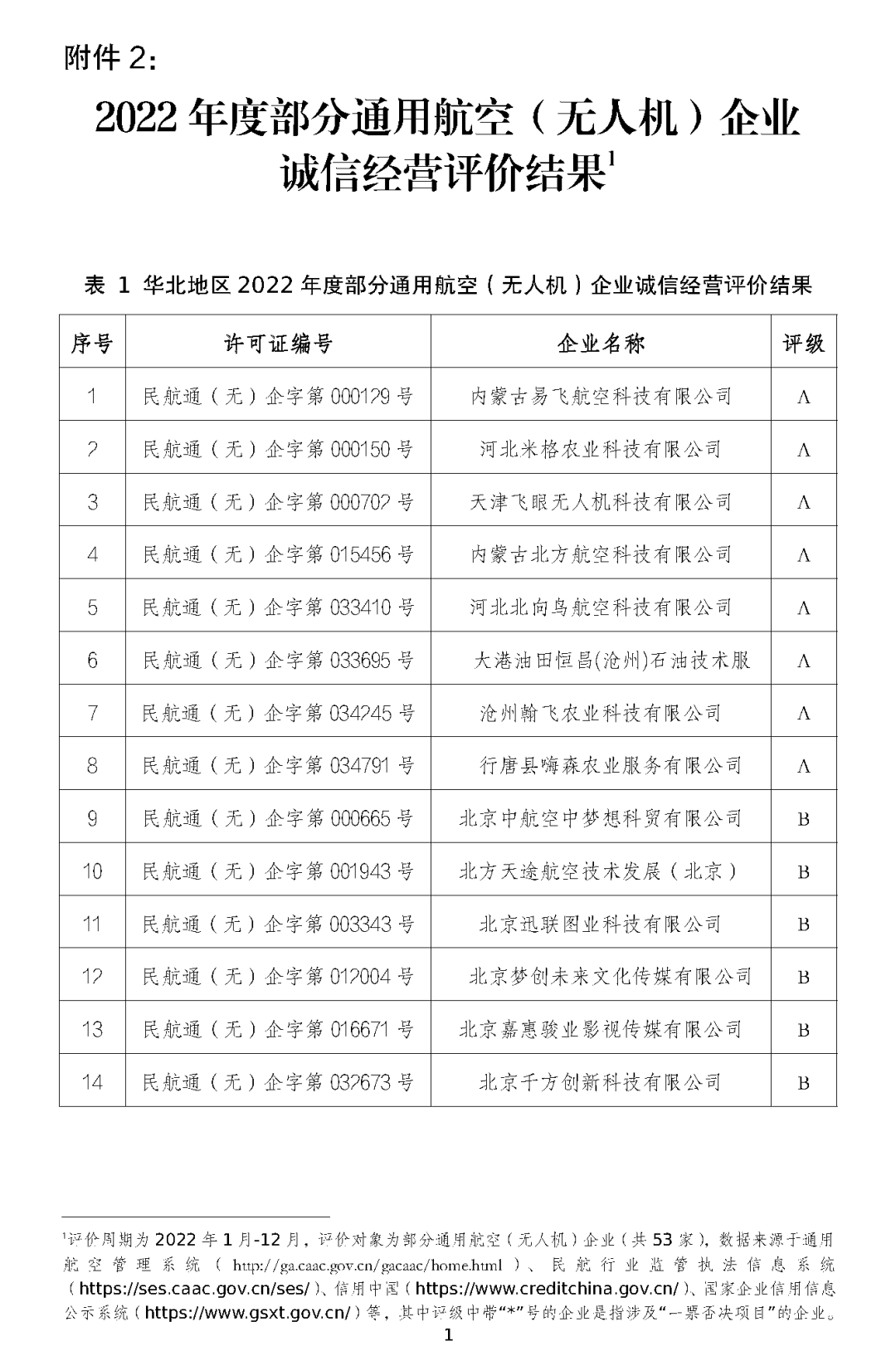 ■ 2022年度通用航空(无人机)企业诚信经营评价结果