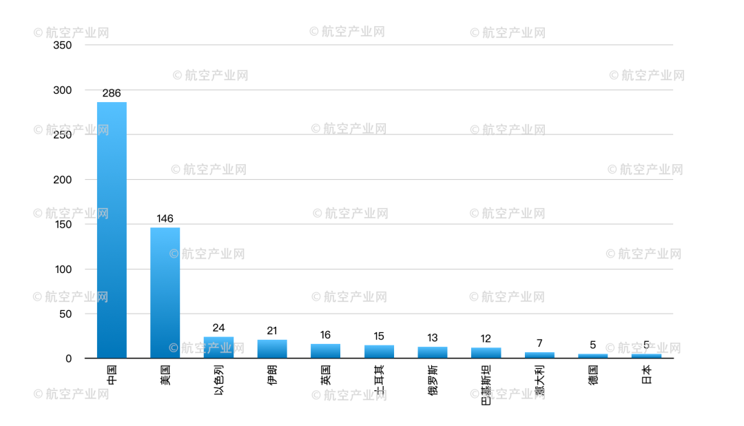 从国家分布上看,无人机制造呈现中美两强格局,中国和美国型号数量占比超70%。其次是以色列、伊朗、英国、土耳其等国家。其中,中国有代表性的无人机研发与制造企事业单位有:中航(成都)无人机系统股份有限公司、航天彩虹无人机股份有限公司、航天时代飞鸿技术有限公司、中国直升机设计研究所、四川腾盾科创股份有限公司等。