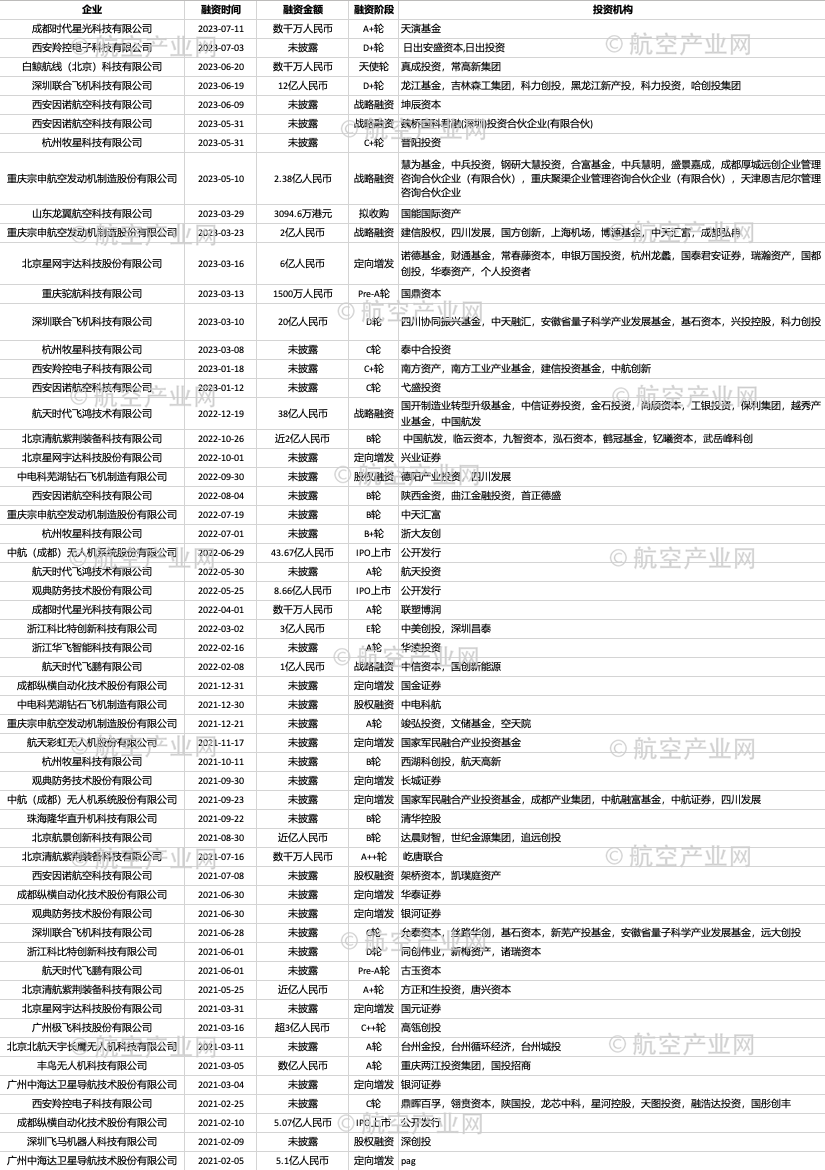 在产业投融资方面,无人机产业链也是航空航天制造新兴的投资领域之一。“经度”系统较完整地收录了无人机产业链的投融资动态,部分企业的融资情况可见上表。