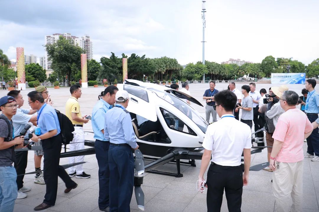 在冯如广场“中国航空之父”冯如先生的铜像前,EH216-S载人级自动驾驶飞行器缓缓上升,圆满的完成多次飞行演示,以此致敬百年前的中国航空传奇,这也是嘉年华活动中的重头戏之一。