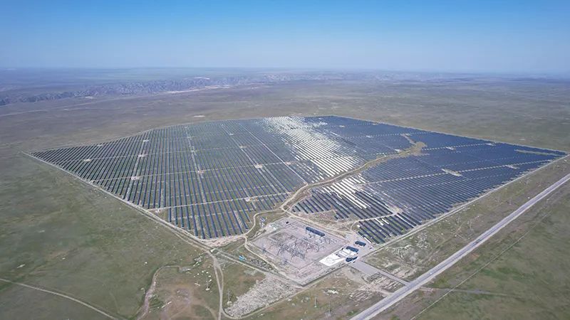 这是2023年5月4日在哈萨克斯坦阿拉木图州拍摄的卡普恰盖100兆瓦光伏电站(无人机照片)。这是哈萨克斯坦单体最大的光伏发电项目之一,也是中哈绿色能源合作项目之一,由中国企业寰泰能源与哈萨克斯坦合作伙伴投资建设。新华社发(奥斯帕诺夫 摄)