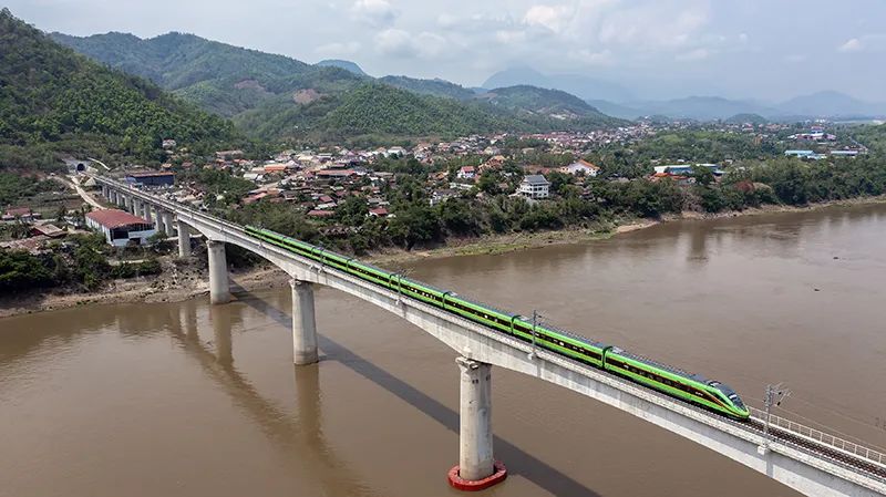 转载 2023-10-11 11:10 新华社 来源:新华社今年恰逢共建“一带一路”倡议提出十周年。十年来,“一带一路”倡议合作硕果累累,陆续建成的一系列标志性项目助力各国发展,为各国人民带来实实在在的好处。从空中俯瞰,这些“国家地标”尽显恢弘大气,成为“中国建造”的闪亮名片。2023年5月28日,中老铁路客运列车通过老挝琅勃拉邦湄公河特大桥(无人机照片)。中老铁路北起中国昆明,南抵老挝万象,全长1035公里,是“一带一路”共商合作、共建项目、共享红利的生动例证。截至10月3日,中老铁路开通运营满22个月,累计运输货物2680多万吨,其中进出境货运量550万吨,货物品类增加至2700多种。新华社发(陈畅 摄)