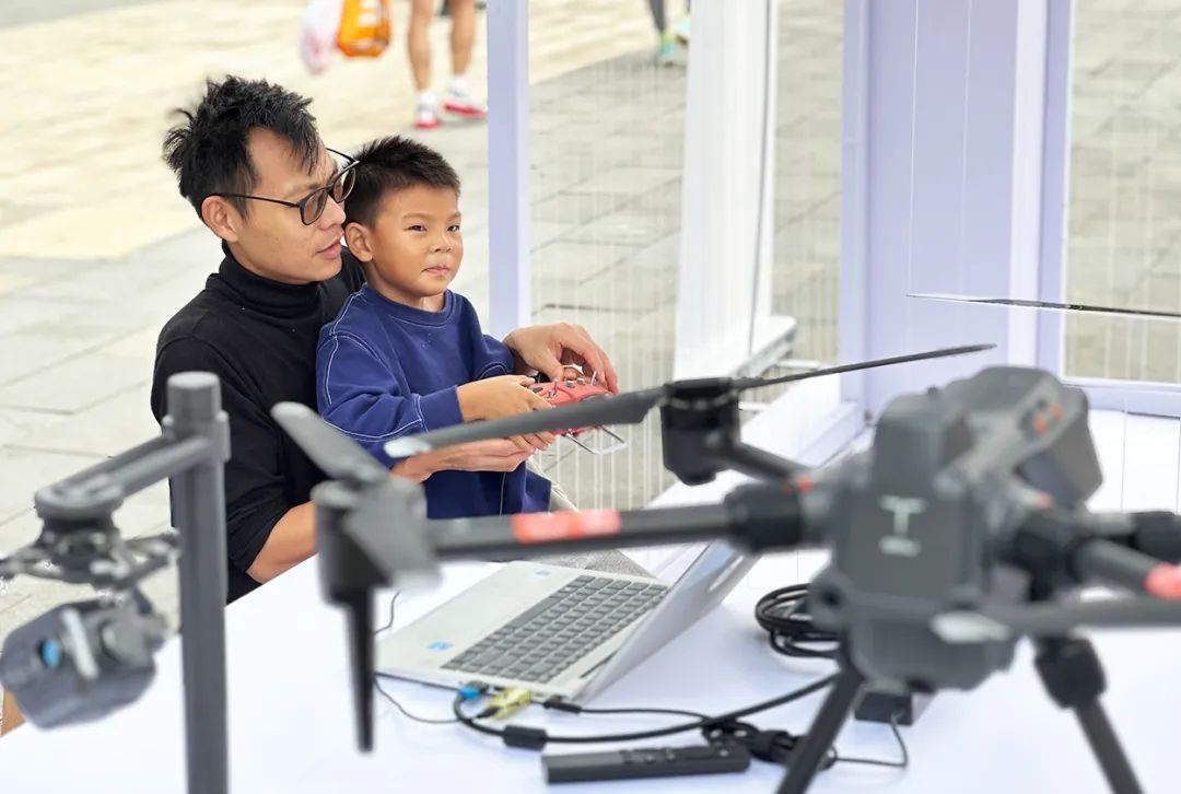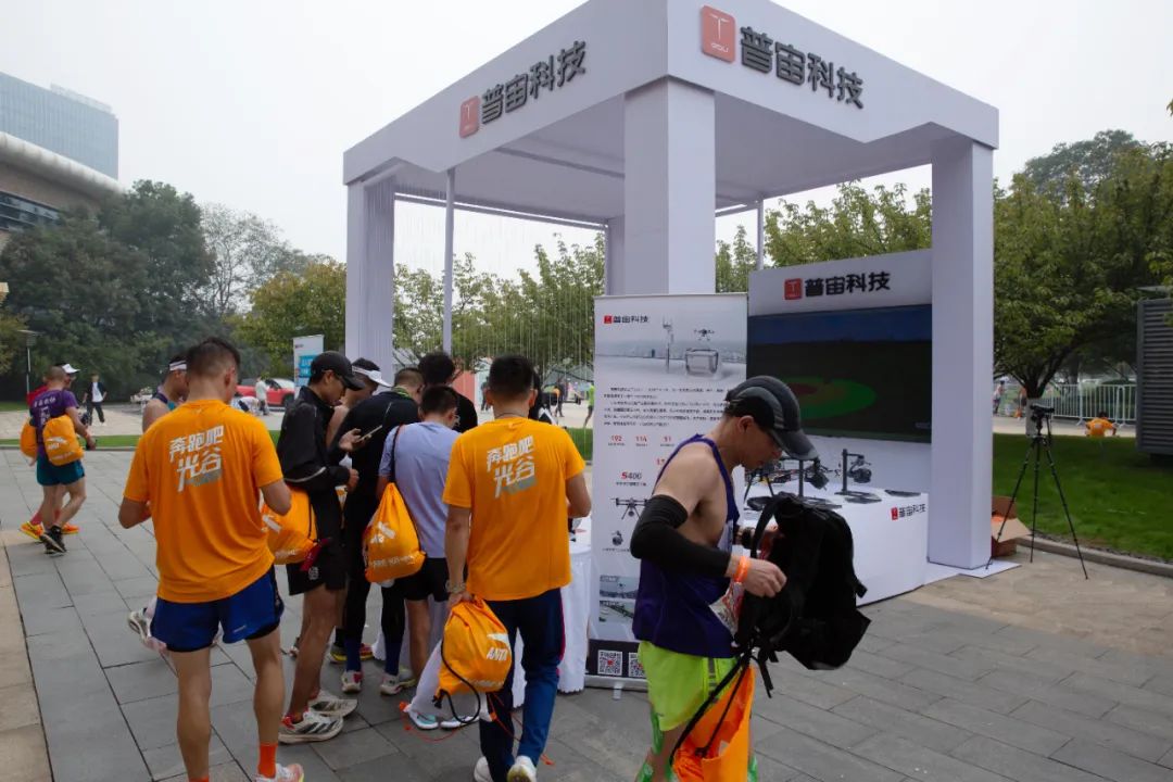 在全马终点——光谷地标建筑“马蹄莲”前,普宙科技无人机文化展示区吸引了众多参赛选手和围观群众的目光。S400无人机飞行演示、航模试飞、模拟飞行体验、产品静态展示……一系列无人机知识科普也让大家领略到了文化科技交融之美。