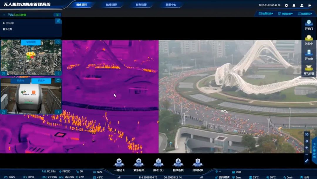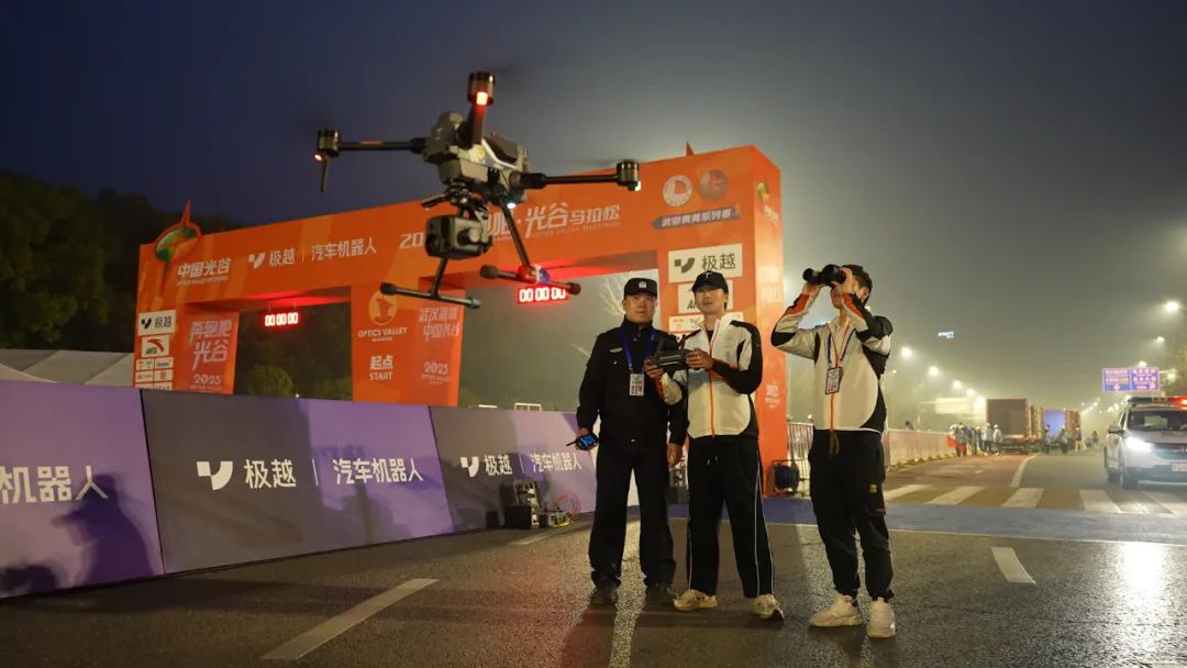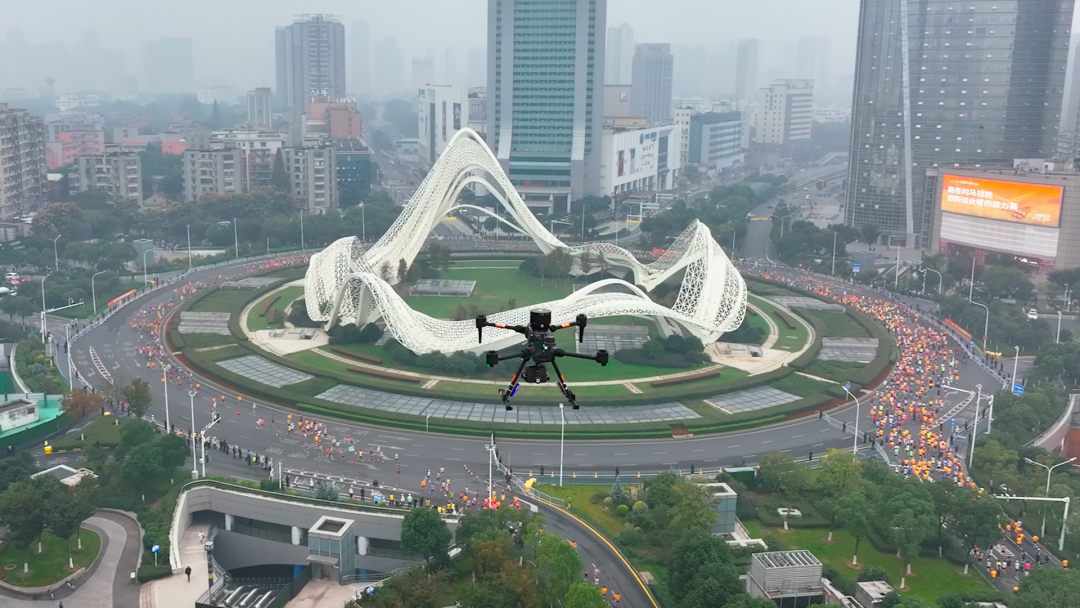 起跑后,现场待命的无人机保障小组全力响应指挥部的安保需求,S400无人机化身空中护跑团,通过接力巡飞护航,在光谷广场、光谷国际网球中心、高新大道光谷生物城、九龙水库等区域进行重点巡查。