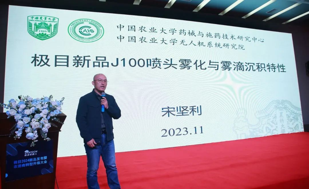 中国农业大学无人机系统研究院副院长宋坚利教授发表《极目新品J100喷头雾化与雾滴沉积特性》演讲。宋教授结合实践数据论证,从专业角度更加深入地解读了J100的喷洒原理,让我们对极目无人机打匀打透的原因有了更精准清晰的理解。03助力农资商转型,赋能农业产业化