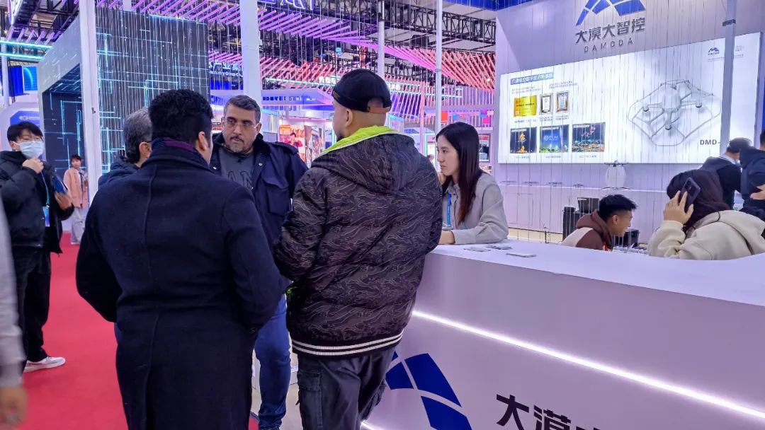 本次链博会,大漠大重点展示了第三代智能化室外V3编队无人机和新一代高精度室内V2无人机编队表演以及最新国际国内精彩案例,吸引了众多展商、观众和各界人士纷纷前来咨询和洽谈。他们对大漠大无人机编队的产品和技术产生浓厚的兴趣,也对中国无人机编队的技术表示惊叹,部分企业和人士还表达了希望与大漠大建立合作的意向。