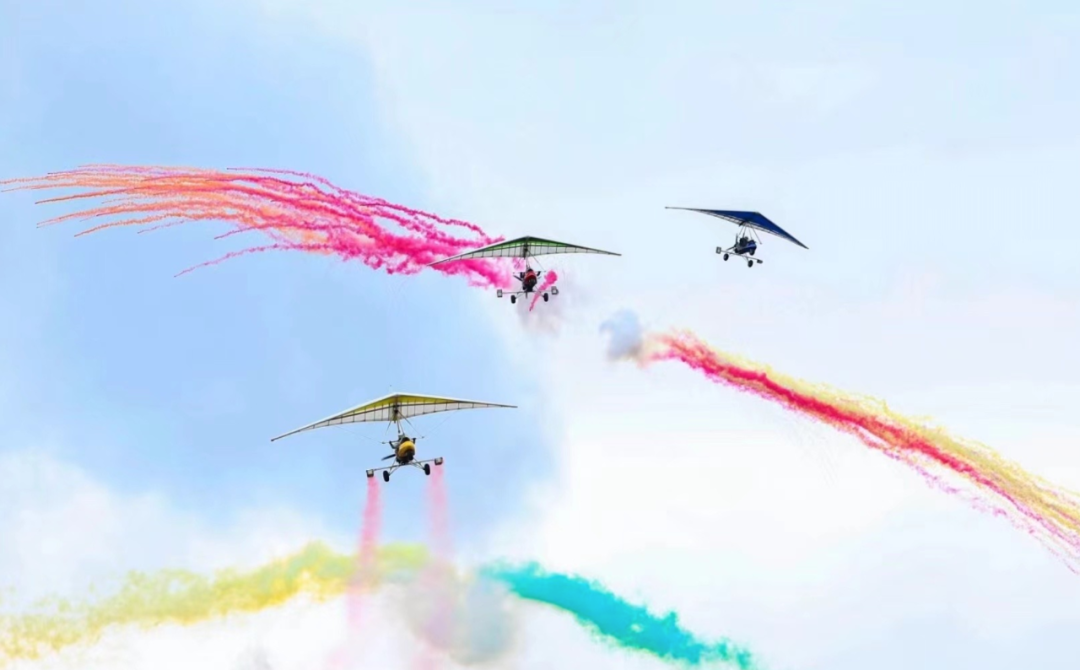 2023建德航空飞行大会三角翼三机编队飞行表演