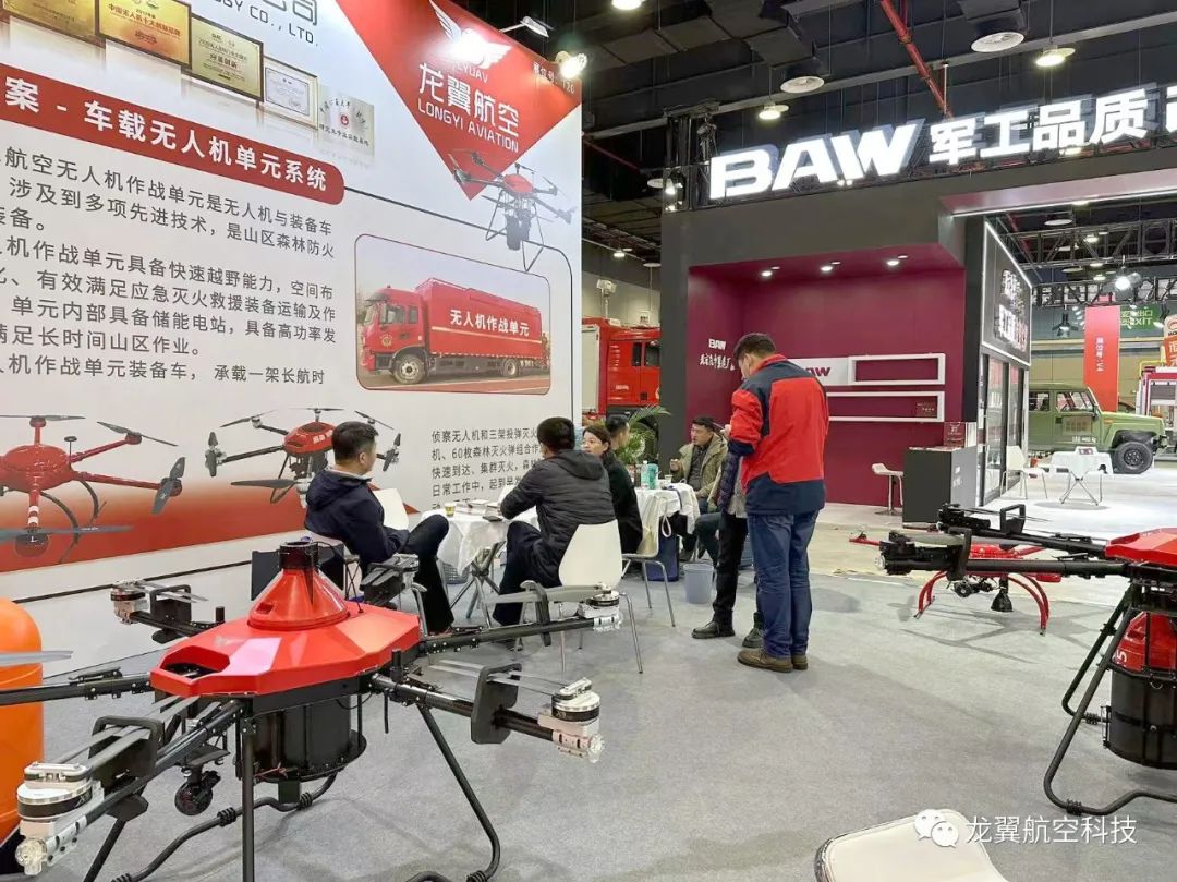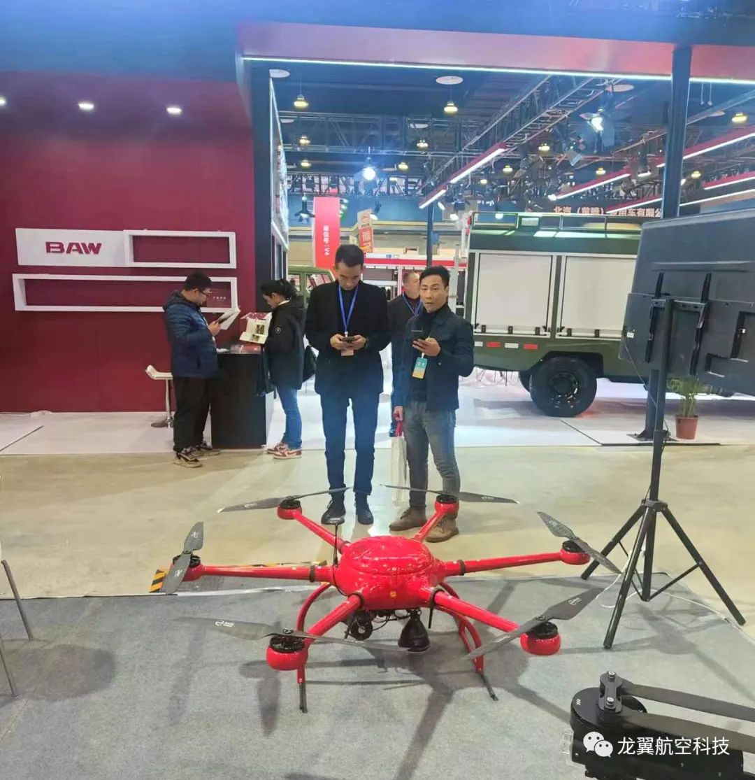 山东龙翼航空科技有限公司展示的是产品是消防应急救援系列无人机(LY-F150、LY-FT60)和侦察无人机(LY-F6)以及F-K系列水基森林灭火弹。