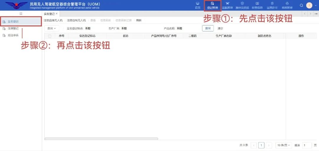 ▼依次点击顶部菜单栏 [登记管理] 按钮 —— 左侧菜单栏 [实名登记] 按钮 。