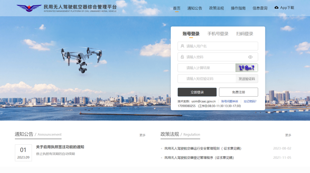▼打开浏览器,输入官方链接进入UOM平台(网址:https://uom.caac.gov.cn/)。